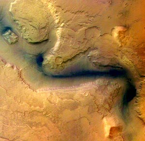 Desde 2.000 kilómetros de la superficie, la cámara de la sonda Mars Express ha tomado unas imágenes tridimensionales en altísima resolución que demuestra lo que puede ser el resultado de una antigua erosión producida por ríos. La probabilidad de que estos existieran es cada vez menos discutible, ya que la Mars Express ha detectado la presencia de agua helada en el polo sur del planeta.